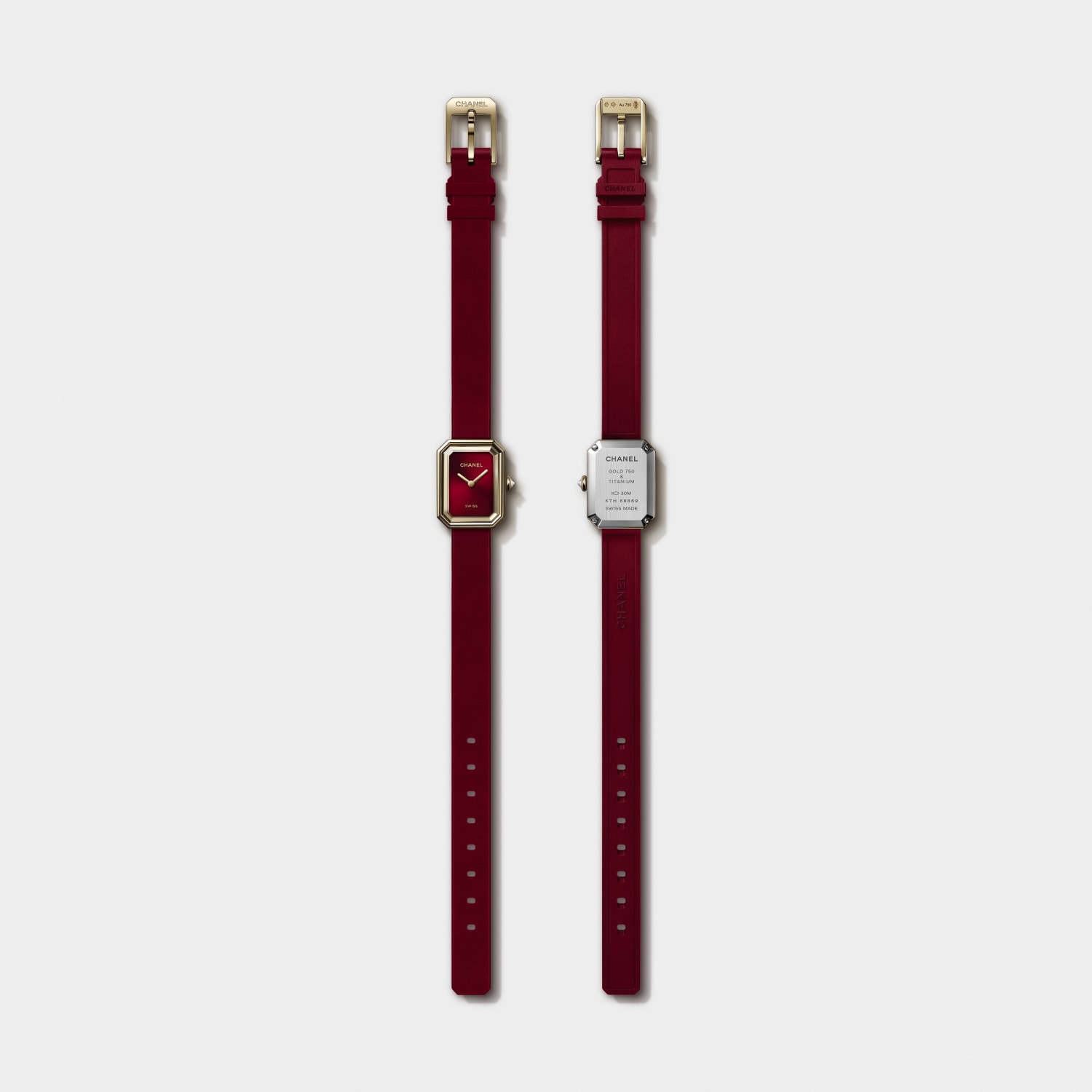 Cette forme octogonale n’a rien d’un caprice graphique. Elle dialogue avec deux repères fondateurs de la Maison : le bouchon du parfum N°5 et la géométrie de la place Vendôme. Deux références, deux silhouettes, une même idée de netteté. La Première Ruban Rouge reprend cette grammaire et l’emmène ailleurs. Le rouge donne du relief à cette architecture. Il réchauffe la rigueur. Il injecte du tempérament.