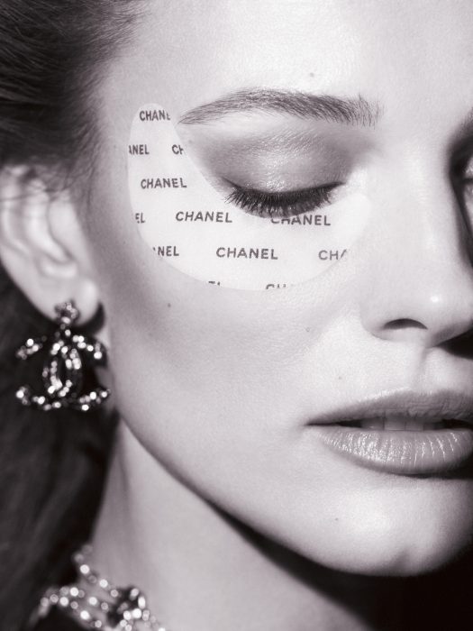 L’usage se veut aussi simple qu’instinctif : on applique une paire de patchs sous les yeux, on laisse poser cinq minutes — et l’on peut prolonger jusqu’à vingt minutes si l’emploi du temps le permet —, puis on retire les patchs avant de faire pénétrer l’excédent. CHANEL propose une gestuelle signature pour potentialiser l’effet. Le geste lissant, d’abord, s’effectue sur la patte d’oie : deux mouvements alternés, du coin externe de l’œil vers la tempe, répétés trois fois. Le geste illuminateur, ensuite, s’exécute sous l’œil en trois lissages vers l’extérieur — en partant du coin externe, puis du milieu, puis du coin interne — là encore répétés trois fois. Le contour de l’œil se trouve alors idéalement préparé à l’application du maquillage, pour prolonger l’effet fraîcheur par une mise en beauté immédiate.