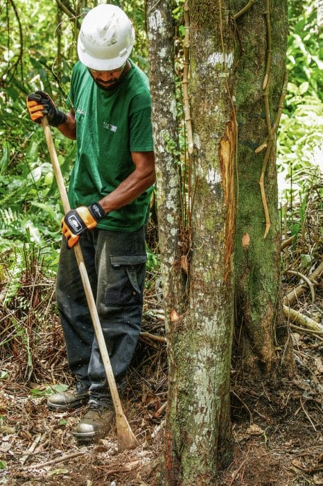 Le prélèvement n’est jamais massif. Il est ciblé, accompagné, ritualisé. Ce n’est pas un abattage : c’est une sélection. TAKONE, la structure kanak en charge de l’exploitation, procède ensuite à une coupe douce, dans le respect de l’arbre et de la biodiversité. Rien n’est mécanisé. Le bois est débité à la main, transporté à dos d’âne — un clin d’œil aux pratiques ancestrales, mais aussi un choix écologique.