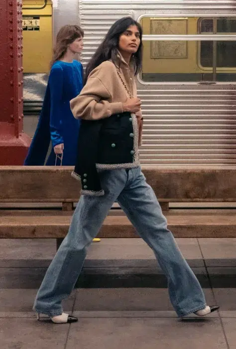 Le lieu raconte aussi une idée très simple. Dans le métro, les hiérarchies s’effacent. Les strates sociales se mélangent. C’est un endroit où l’on peut croiser une étudiante en jean et une femme en tenue de grand soir sur le même quai, à la même minute. Matthieu Blazy prend ce constat au sérieux. Il en fait une structure. La collection avance comme un casting. Une galerie de portraits new-yorkais, du matin à la nuit.